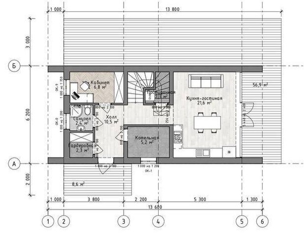 Размер дома 6,2х13,6