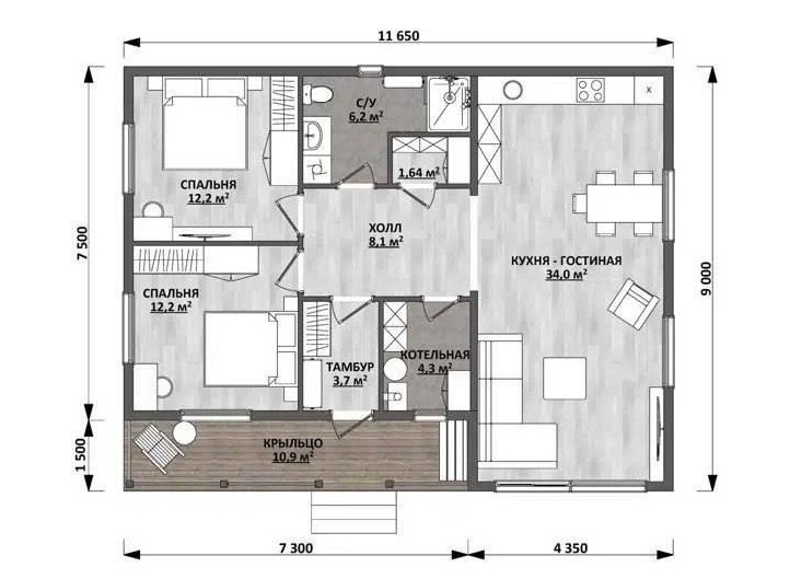 Размер дома 7,5х11,6