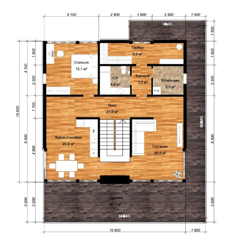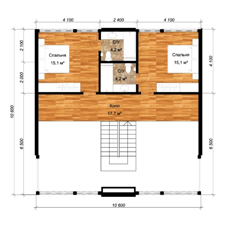 Размер дома 10,6х10,6