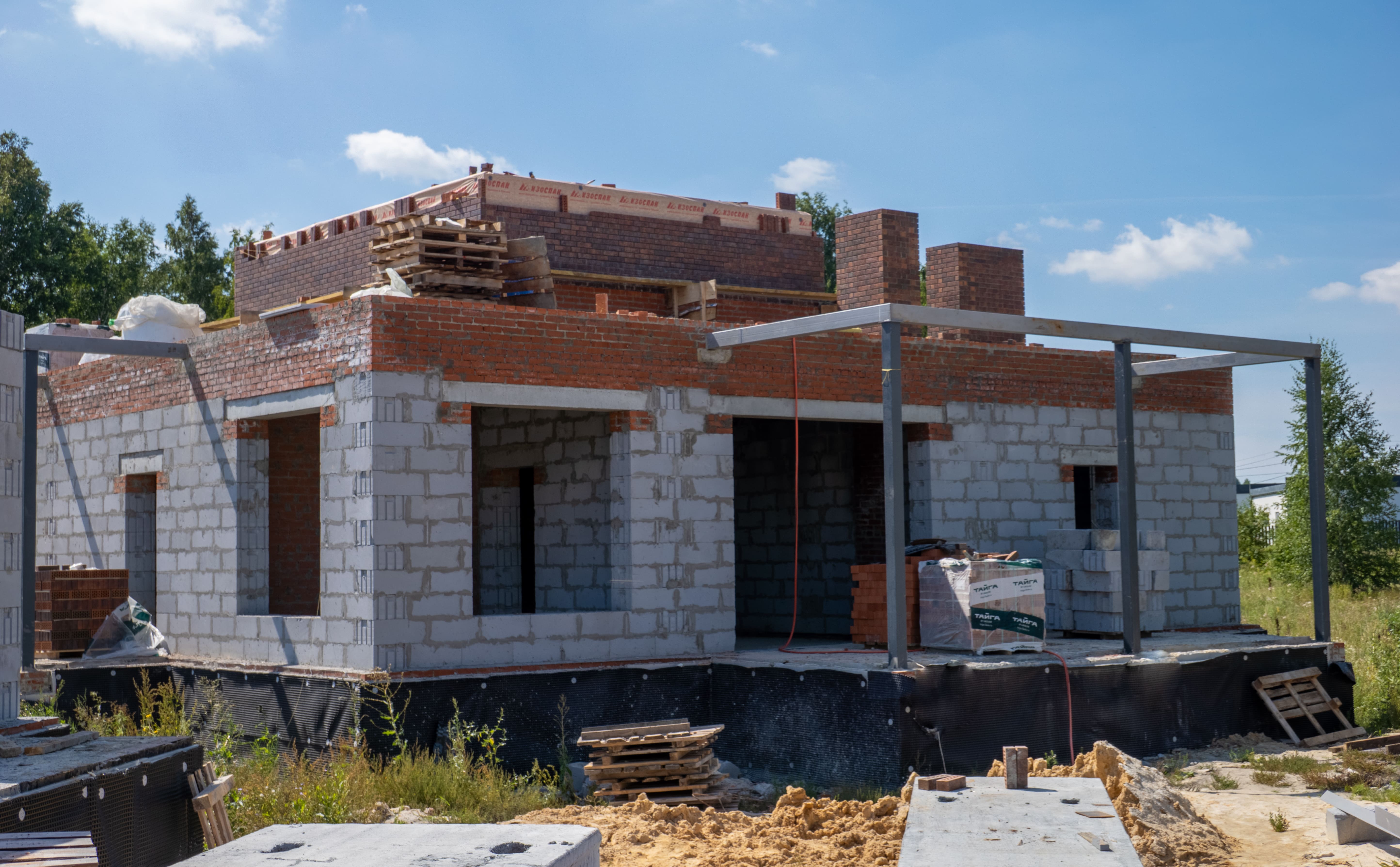 Дом из газоблока с беседкой и баней